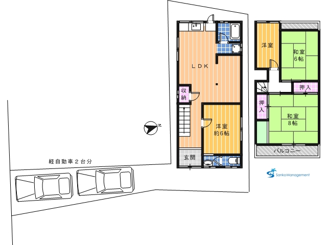 軽自動車2台分の駐車スペースがあります
