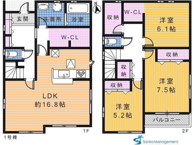 (1号棟)、価格3580万円、3LDK、土地面積167.38m2、建物面積97.59m2
