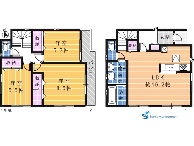 (4号棟)、価格2980万円、3LDK、土地面積82.34m2、建物面積85.45m2