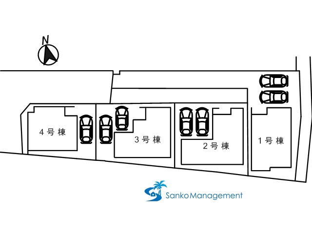 - 駐車場スペースは2台確保の区画と1台の区画があります
