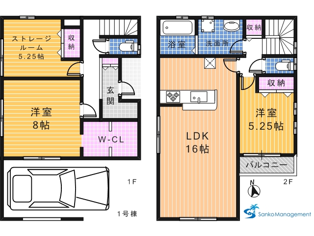 (1号棟)、価格4480万円、2LDK+S、土地面積75.58m2、建物面積100.22m2